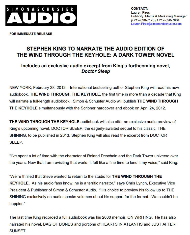 It’s the final item in my schedule for The Wind Through the Keyhole! Now tuning in to Just King Things.
