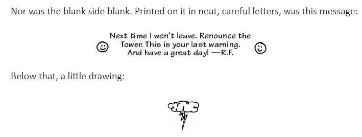 “There are forces at work here, big ones, and not all of them are working to keep us away from the Tower.”